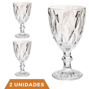 2 Copos Transparente Taças Diamante 300ml Para Agua Vinho