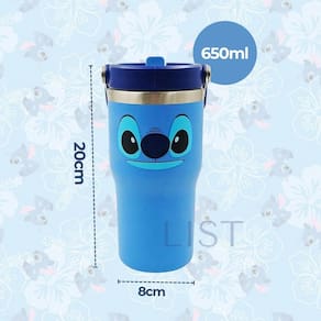 Copo Tumbler 650 ML Personagens Copo Garrafa Térmica Stitch - 650ml Inox com Tampa de Vedação, Canudo de Silicone e Alça Retrátil Hidrate-se com muito mais estilo e praticidade com o copo garrafa térmica do Stitch Ideal para levar bebidas para a escola, trabalho, academia, passeios ou viagens, ele combina funcionalidade, resistência e um design superfofo do personagem mais amado da Disney. Características do Produto: