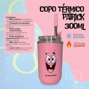 Copo NEO com canudo 300ML Cor: PATRICK Copo Térmico Inox 300ml Patrick Mantém Bebidas Geladas por 12h e Quentes por 8h Leve mais diversão e praticidade para o seu dia com o Copo Térmico de 300ml disponível na versões exclusiva: Patrick rosa . Perfeito para quem busca um produto funcional com um toque criativo, ideal para adultos e crianças. Características do Produto: