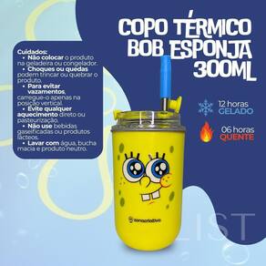 Copo Térmico Inox 300ml Bob Esponja Mantém Bebidas Geladas por 12h e Quentes por 8h