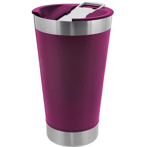 Copo térmico abridor 473ml dia dos namorados roxo n5 Características: - parede dupla com isolamento a vácuo; - bebida gelada por 6 horas; - bebida quente por 4 horas; - não transpira por fora.