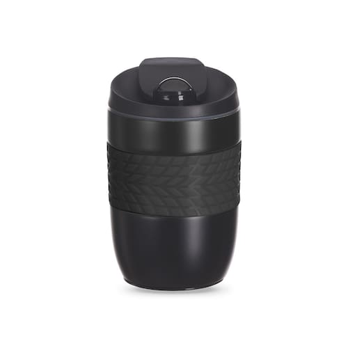 Caneca antiqueda em aço inox parede dupla de 260ml, conserva temperatura quente ou fria, pegador em silicone e bico com tampa. Na parte inferior da caneca existe uma ventosa que por sucção previne possiveis quedas causadas por batidas, choques e colisões.