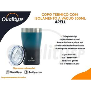 Copo Térmico Arell Isolamento a Vácuo Aço Inox Tulip Pint 500ml + Tampa Acrílico com vedaçãoTECNOLOGIAOs copos térmicos Arell são feitos com parede dupla de aço inox 304 usando a tecnologia de isolamento a vácuo. Isso significa que o espaço entre as paredes de aço inoxidável é absolutamente vazio, diminuindo a transferência de calor em torno de todo o copo. Isso faz com que a temperatura da sua bebida seja muito menos afetada pela temperatura fora do copo. Assim, você pode aproveitar a sua bebida gelada ou quente por muito mais tempo.- Até 18 horas com gelo- Até 5 horas gelado- Até 1 hora quenteESCUDO DE COBREOs copos Arell contam também como uma camada extra de isolamento térmico. Eles possuem um revestimento de cobre na parede exterior da parte interna formando um isolamento ainda maior. O cobre reduz a troca de temperatura e isso faz com que nossos copos tenham uma eficiência de até 25% a mais do que qualquer outra marca do mercado.CORESA Arell inova o mercado Brasileiro trazendo 8 lindas cores que agradam a todos os estilos e idades. As cores desempenham um papel fundamental em nossas vidas e são capazes de afetar nossas emoções e humor de maneira que poucas outras coisas podem. Escolha a sua cor favorita e desfrute sua bebida gelada ou quente por horas.FUNDO EMBORRACHADO ANTI-RUÍDOOs nossos copos vem com uma proteção de silicone no fundo que é livre de BPA, diminui o ruído ao assentar o copo e o deslizamento em superfícies planas evitando quedas.TULIP PINT DESIGNCom o pé mais fino e a boca mais aberta, nossa Tulip Pint ajuda na formação e retenção de espuma. Um clássico para tomar Pilsen, dirige os aromas de lúpulo direto para o nariz.Marca: ArellLinha: DrinkwareCapacidade: 500mlAltura: 152mmBoca: 88mmFundo: 70,5mm