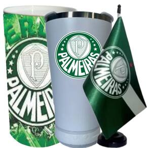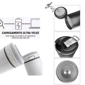 Copo Térmico Com Caixa De Som Bateria Recarregável Bluetooth Time Branco 4 Copo térmico com caixa de som Time SP Branco com Banderinha e Tubo.