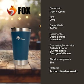Copo Térmico Fox Stainless Quente e Frio com Tampa 473ml Azul