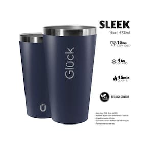O copo térmico gluck sleek night blue em aço inox 473ml suporta 4h gelado é extremamente resistente, prático e de altíssima qualidade. O principal diferencial do copo térmico sleek 473ml glck é o seu design aliado a uma excelente capacidade térmica. Ele mantém sua bebida quente por até 45 minutos e gelada por até 4 horas. Se você utilizar gelo, vai manter por até 7 horas.O copo térmico gluck sleek night blue em aço inox 473ml suporta 4h gelado é extremamente resistente, prático e de altíssima qualidade.O principal diferencial do copo térmico sleek 473ml glck é o seu design aliado a uma excelente capacidade térmica. Ele mantém sua bebida quente por até 45 minutos e gelada por até 4 horas. Se você utilizar gelo, vai manter por até 7 horas.Com capacidade de 473ml, ele é perfeito para cerveja, chopp, água, café ou qualquer outra bebida que você quiser sempre com você, quente ou gelada.Esse modelo tem design diferenciado, com inspiração escandinava e traços arrojados. Um lindo copo que combina com todos os seus melhores momentos, seja no trabalho, no churrasco, em festas, na academia, de manhã ou à noite, o glck vai estar com você.Outro ponto muito importante é a sua composição, é a construção em aço inox com parede dupla de isolamento. Essa é a tecnologia que proporciona a capacidade térmica do seu copo.Além de tudo, ele é livre de bpa. O bpa bisfenol a é uma substância química presente na maioria dos plásticos e polímeros, e é comprovadamente nociva à saúde. Por isso, escolha um copo que se preocupe com a sua saúde e bem-estar.Pra cuidar do seu copo glck e mantê-lo sempre novinho em folha, lave somente com água e sabão e não utilize produtos químicos abrasivos.Se você procura por uma marca que faça a diferença, por um acessório feito pra durar uma vida, por qualidade, praticidade e durabilidade, por alegria e bons momentos, pode parar de procurar, é só apostar na glck.A glck nasceu nos estados unidos. Lá, a utilização desse tipo de copo seja no trabalho, em viagens ou mesmo para lazer é muito valorizada, tanto pela praticidade e qualidade que proporciona quanto pela diminuição de resíduos plásticos na natureza.A marca preza por enaltecer os bons momentos, sejam eles quais forem. O lema é be glck. Ser glck não se limita a ter ou usar os produtos, mas sim ter personalidade, ser diverso, múltiplo e ter a consciência de escolher uma marca que se preocupa com o impacto ambiental e com o planeta. Especificações técnicas:marca: glckmodelo: copo térmico sleek cor: night bluecapacidade: 473mlmaterial: aço inox 304- parede dupla com isolamento á vácuo- empilhamento infinito- parte externa não suatérmica quente: 45mintérmica fria: até 4hgelo: até 15hlivre de bpadimensões do produto axcxl : 14,6 x 8,7 x 8,7cmpeso: 190ggarantia: vitalícia contra defeitos de fabricação.