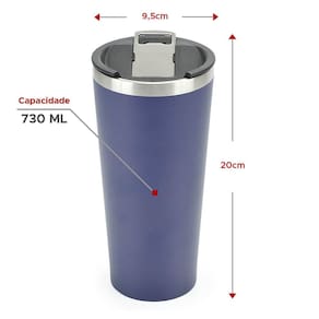 - capacidade 730ml - dimensões do copo 9,5 x 20cm diâmetro x altura - parte externa de abs resistente e interno de inox com blindagem térmica - até 40 min bebidas quentes e 3h bebidas geladas Ean: 7899766707826