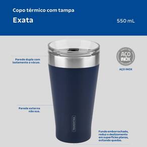Copo térmico tramontina exata em aço inox azul com tampa 550 ml ref: 61646/525