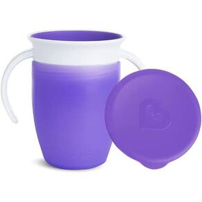 Imagine um mundo em que as bebidas não vazam e ainda facilitam o aprendizado do seu filho. Não, não é um milagre. é o copo 360° da Munchkin. O primeiro copo inventado com os pais e as crianças em mente, um copo que elimina a bagunça e apoia a saúde dental infantil. É possível beber de qualquer lugar ao redor do aro, como um copo regular e ainda ajuda a apoiar o desenvolvimento muscular da boca da criança. Sem bicos extra, palhetas ou peças, é fácil de usar e ainda mais fácil de limpar.