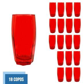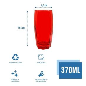Copo Vidro 370ml Florence Glamour kit com 18 Vermelho 18 Copos de Vidro Florence 320ml