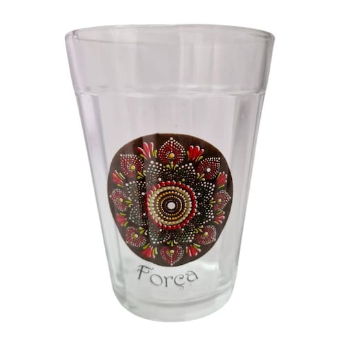 Adicione mais força e elegância ao seu dia com o Copo Vidro Mandala Força - uma peça cheia de poder e significado