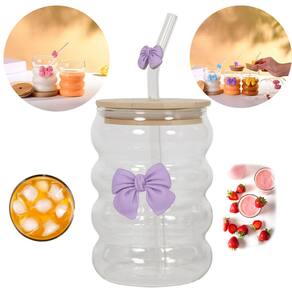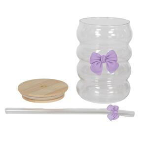 Copo de Vidro Canelado Vintage com Laço Roxo – 500ml