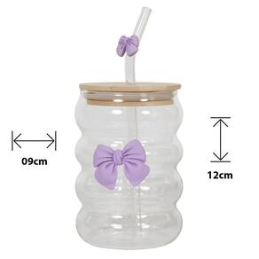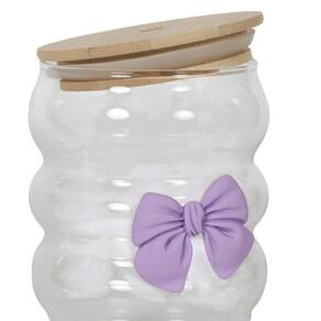 O charme especial fica por conta do detalhe do laço roxo e da tampa inteligente, que oferece duas formas de uso: pelo canudo de vidro ou diretamente no bocal. Copo Vidro Canelado Nervuras com Laço 500ml Vintage Luxo