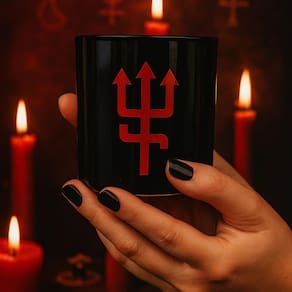 Copo Vidro Preto Whisky Exu Tridente Vermelho Apresentamos o Copo Vidro Preto Whisky Exu Tridente Vermelho, uma peça única que combina elegância e simbolismo. Com capacidade de 300 ml, este copo de vidro é ideal para apreciar seu whisky favorito, proporcionando uma experiência de degustação inigualável.