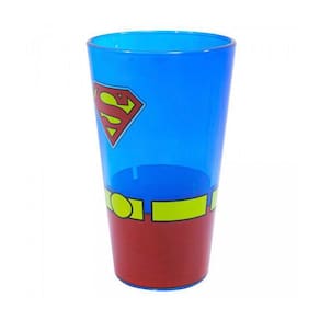Copo de vidro Grosso e Resistente com capacidade para 450ml, customizado nas cores e estampa do Super Homem.