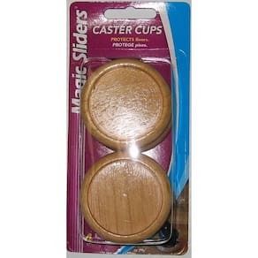 - Brand Name: Magic Sliders Material: Plastic Self Adhesive: No Product Type: Caster Cup Color: Oak Shape: Round Width: 2 in. Length: 2 in. Number in Package: 4 pk Packaging Type: Carded