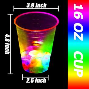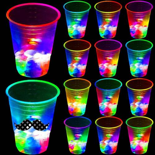 ?INCLUÍDO?Inclui 24 copos de plástico de 16 onças, 24 luzes coloridas LED intermitentes, brilham por 24 horas.