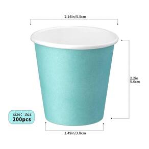 “Tamanho: 200 peças - 1 tamanho: 3 onças Cor: azul claro Quantidade: 200 pacotes Características: - Robusto e grosso, adequado para xícaras de café concentradas, xícaras de enxaguante bucal, xícara experimental de lanches de supermercado, etc. - A borda lisa laminada adiciona resistência adicional e permite fácil ingestão. - Feita de material de papel premium, mais saudável e ecológico, é uma ótima alternativa ao plástico tradicional. Com copos de papel descartáveis, elimine as preocupações e melhore a eficiência: quando chega a hora de começar o dia e você precisa de um café em qualquer lugar, ou está organizando uma festa de aniversário e preparando bebidas para as crianças, não quer se preocupar em carregar uma caneca ou com crianças caindo e quebrando copos. Nota: xícaras de café descartáveis de 3 onças são super pequenas, verifique o tamanho antes de comprar.