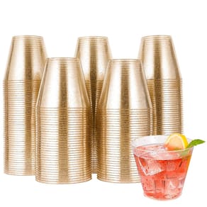 Pacote com 200 copos de plástico com glitter dourado, grau alimentício, sem BPA, materiais duráveis,