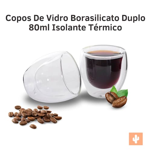 Material: Vidro Borossilicato Duplo Capacidade: 80 ml Dimensões: 6,5 cm x 6,0 cm x 6,3 cm Peso: Leve e prático