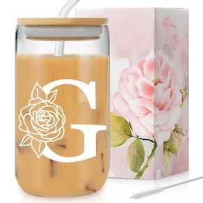 - Presente ideal para mulheres - Nossos copos de vidro adornados com iniciais personalizadas e designs refinados de rosa, simbolizando amor e elegância. O design inicial oferece um charme distinto às xícaras de café geladas, tornando-as a expressão perfeita de personalização. Os copos são os presentes ideais para transmitir amor e apreciação às mulheres - mãe, irmã, esposa, filha, namorada, noiva, amiga, professora!