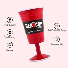 Na Red Cup Living, nossos copos são feitos de um material plástico ABS forte, durável, reutilizável e ecológico, para que você possa se sentir bem usando esses copos vermelhos. Nossa taça de vinho de plástico vermelho é projetada para ser usada várias vezes. Tem aquele visual legal do copo vermelho dos seus dias de faculdade, mas é feito de algum material sério que se alinha com seus valores adultos atuais amigos da Terra.