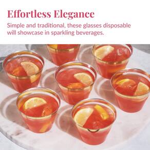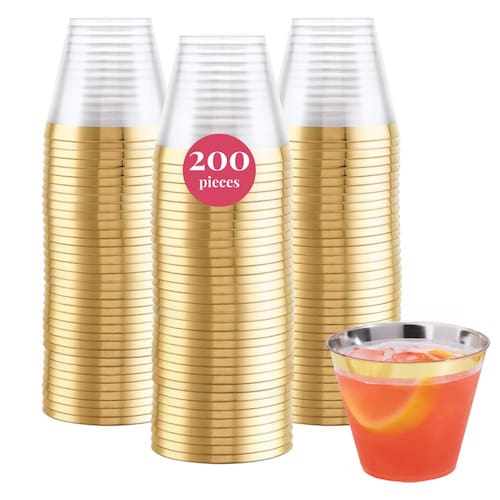 Copos rígidos descartáveis | Copos de vinho de plástico | Copos de coquetel de plástico | Copos de plástico | Copos de festa a granel | Copos de casamento | Copos transparentes (200 ct - Ouro (255 g))