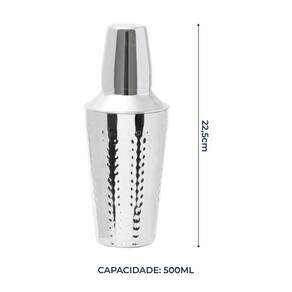 Coqueteleira cobbler aço inox martelado 500ml mimo style Cor: inox Material de qualidade: . Feita em aço inox martelado, um material super resistente e fácil de limpar, já que não apresenta porosidades e, assim, evita o acúmulo de resíduos e odores.