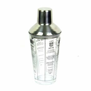 Coqueteleira de vidro, feita com a tampa de aço. Receitas inclusas na própria Coqueteleira com determinadas medidas para você fazer o drink que desejar. Marca: HERCULES Características: Material: Aço e Vidro. Capacidade: 500ml. Corpo graduado com receitas. Cor: incolor com tampa prata. Dimensões da peça: Ø8,9 x 22 cm. Dimensões da Embalagem: 10 x 10 x 22,8 cm. Conteúdo: 1 Coqueteleira. Aplicação: Ideal para uso caseiro ou comercial na preparação de drinks que você desejar. Código: UB25500