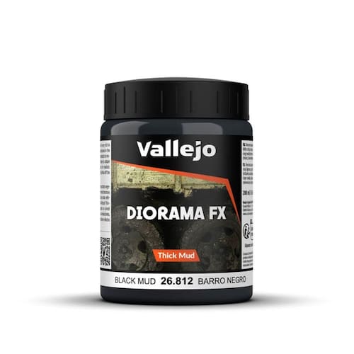 - Com texturas diorama FX Thick Mud você dá vida, atmosfera e, acima de tudo, você alcança um contexto histórico ou fantástico para o seu trabalho que o mergulha em uma experiência realista. Devido à natureza translúcida do produto, recomenda-se aplicá-lo sobre uma base previamente pintada de uma cor mais escura para melhorar o efeito de profundidade. Seca em cerca de 24 horas, dependendo da espessura da aplicação e da umidade do ambiente