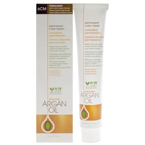 Uma única cor de cabelo permanente — Tintura de cabelo permanente feita com óleo de argan — Oferece tons ricos e precisos com cobertura de cinza — Melhora a umidade e elasticidade — Loiro cobre escuro enferrujado de 6 cm (3 oz)
