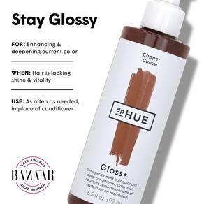 - Encontre o seu tom – o tom de cobre é melhor para ruivas que desejam melhorar os tons de vermelho e cobre já em seus cabelos. O Gloss+ melhorará sua cor, brilho e suavidade, mas não é formulado para cobrir permanentemente os cinzas.