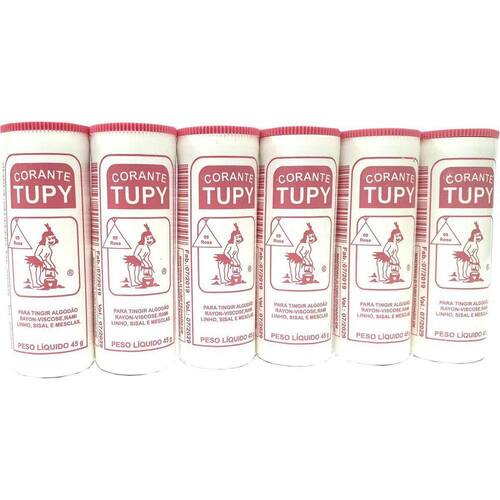 Corante Em Pó Rosa Tupy AlgodãoO Corante Tupy é um corante de composição orgânica, tendo o seu pH, em média, neutro, quando dissolvido em água quente, não apresenta odor e sua forma física é sólida e não apresenta característica tóxica. Indicado para tingir tecidos ou fibras de algodão, linho, sisal, rami, rayon-viscose e mesclas.Pacote com 6 tubos de tinta na cor rosa para tingir roupas (algodão, rayon-viscose, rami, linho, sisal e mesclas)Dimensões :19x3x8,5 cm45 g cada tuboPeso: 0,600 kgComposição:6 tubos de tinta
