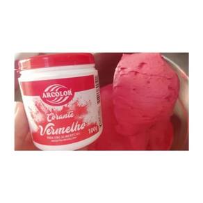 O produto na imagem é um corante alimentício em pó vermelho da marca Arcolor, em embalagem de 100g. As informações principais são: Marca: Arcolor. Tipo: Corante alimentício em pó. Cor: Vermelho. Uso: Para fins alimentícios. Peso: 100g. Origem: Indústria brasileira. Aplicações: Ideal para colorir doces, chocolates, pasta americana, sorvetes, pipoca doce, maçã do amor, caldas, entre outros. Modo de usar: A quantidade varia conforme a intensidade de cor desejada.
