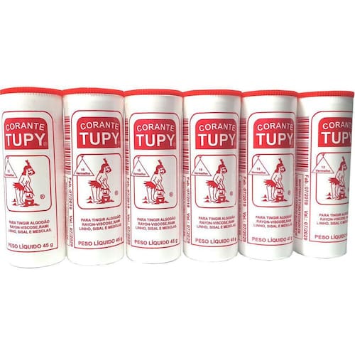 Corante Em Po Vermelho Tupy Algodão O Corante Tupy é um corante de composição orgânica, tendo o seu pH, em média, neutro, quando dissolvido em água quente, não apresenta odor e sua forma física é sólida e não apresenta característica tóxica. Indicado para tingir tecidos ou fibras de algodão, linho, sisal, rami, rayon-viscose e mesclas. Pacote com 6 tubos de tinta na cor vermelha para tingir roupas algodão, rayon-viscose, rami, linho, sisal e mesclas Dimensões : 19x3x8,5 cm 45 g cada tubo Peso: 0,600 kg Composição: 6 tubos de tinta. Marca: Não Informado Ean: 7897568500157