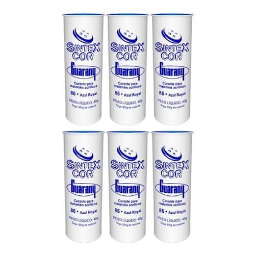 Lembre-se que um tubete é suficiente para 300 gramas de tecido, ou seja, divida o peso da roupa em gramas por 300 e obtenha quantos tubetes serão necessários. Exemplo: 900/300 = 3 tubetes Biquini - 100g - 1/3 Calça Adulto - 700g - 2 e 1/3 Calça Jeans - 800g - 2 e 2/3 Calça Jeans Infantil - 450g - 1 e 1/2 Camiseta 1/2 Manga - 100g - 1/3 Camiseta Regata - 80g - 1/4 Fronha - 180g - 2/3 Lençol Casal - 500g - 1 e 2/3 Lençol Solteiro - 300g - 1 Maiô - 200g - 2/3 Short - 100g - 1/3 Sunga - 50g - 1/6 Toalha Banho - 800g - 2 e 2/3 Toalha Rosto - 180g -2/3 Especial para tingir peças de acrílico com exceção dos corantes 90-Dourado e 91-Prateado e acetato para segmentos de moda e decoração. Instruções de uso: 1 Dissolva o Sintexcocor em água fervente. 2 Misture o Sintexcor dissolvido em um recipiente com água quente o suficiente para cobrir a peça a ser tingida. 3 Lave a peça e, ainda úmida, mergulhe no banho de tingimento, mexendo sempre por 30 minutos. Mantenha sob fervura. 4 Retire a peça do banho e enxágue bem em água corrente. 5 Coloque no Fixacor por 30 minutos, seguindo as instruçõesda embalagem. Indicação: Recuperação de roupas, tie dye, customização, artesanato, decoração, etc. Peso líquido: 40g Quantidade de tecido seco: 300g Itens do pacote: 06 Sintexcor Azul Royal 40g; Marca: Não Informado