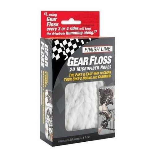 A Corda de Limpeza Finish Line é a melhor ferramenta para limpar cassetes, anéis de corrente, rodas, cubos, eixos, braços de freio e pedivelas. Esse produto é feito de corda de microfibra, que funciona atraindo, removendo e segurando a sujeira. A microfibra trabalha capturando sujeira, graxa e partículas dentro de seus sulcos em forma de estrela. A sujeira é mantida profundamente dentro do núcleo da fibra, além ser altamente resistente a rasgos e ser lavável.