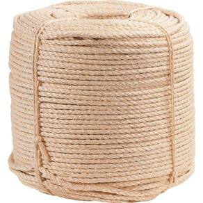Carga de ruptura: 140 kgf Diâmetro da corda: 6,0 mm Comprimento total da corda: 220,0 m Tipo de encordamento: Torcido Número de pernas da corda de sisal: 3 pernas