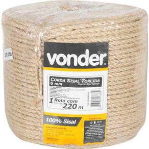Carga de ruptura: 140 kgf Diâmetro da corda: 6,0 mm Comprimento total da corda: 220,0 m Tipo de encordamento: Torcido Número de pernas da corda de sisal: 3 pernas