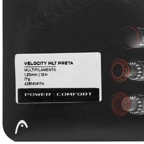Conheça as características da Corda Head Velocity 17l 1.25mm Preta - Set individual- Perfil: Conforto e Potência;