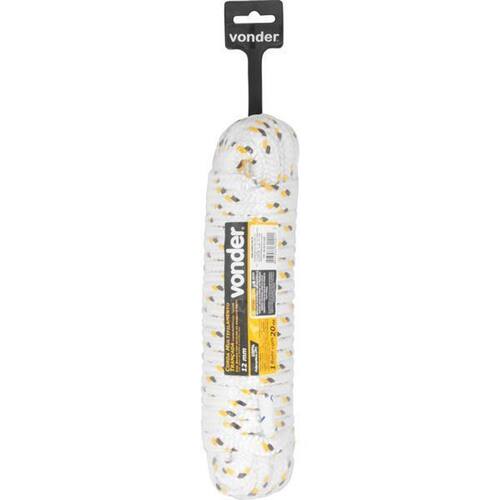 Ref. Fornecedor:8046012020marca:vonderdestaques e diferenciais:Fabricada em polipropileno - PP, possui boa resistência à abrasão e tração. Material 100% virgem.Aplicações e dicas de uso:Ideal para amarração de cargas, fardos, confecção de barrigueiras, redes de proteção esportiva, utilização em frigoríficos, cortinas de aviários e na agricultura em geral. Não deve ser utilizada para elevação/transporte de pessoas, cargas ou animais não usar em cadeiras suspensas, cabos de guia de segurança e fixação de trava quedas. Variação admitida na massa e diâmetro de até 5%, para mais ou para menos. Não é indicada para uso externo ou locais onde possa ter incidência direta de sol, pois não possui proteção contra raios ultravioleta.Características Técnicas:Diâmetro da corda: 12,0 mm Comprimento total da corda: 20,0 m Material da corda: Polipropileno - PP Cor da corda: Branca com detalhes em amarelo e preto Tipo de filamento da corda: Multifilamento Tipo de encordamento: Trançado Massa aproximada por rolo/carretel: 890 g Carga de ruptura: 1.183,58 kgf