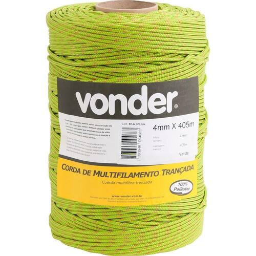 Conteúdo da embalagem1 RoloAplicações e dicas de usoIdeal para amarração de cargas, fardos, confecção de barrigueiras, redes de proteção esportivas, utilização em frigoríficos, cortinas de aviários, na agricultura em geral. Não utilizar em cadeiras suspensas, cabos de guia de segurança e fixação de trava quedas.Destaques e diferenciaisFabricada em 100% poliéster - PET, tornando a corda mais macia e possui excelente resistência contra os raios UV DETALHES TÉCNICOS Carga de ruptura: 708,0 kgf Diâmetro da corda: 8,0 mm Comprimento total da corda: 228,0 m Peso aproximado por rolo/carretel: 11,0 kg Ean: 7893946188849
