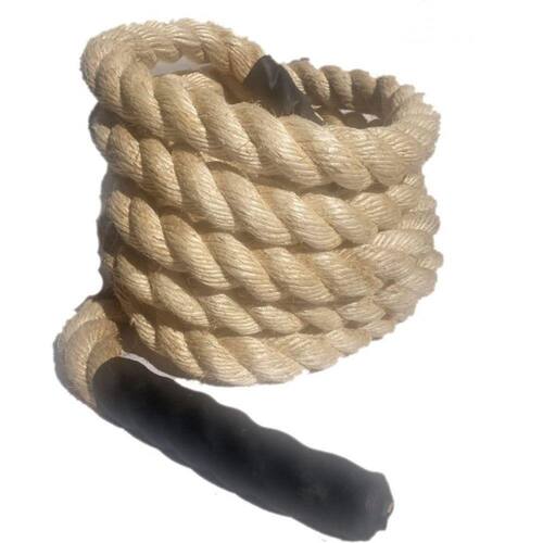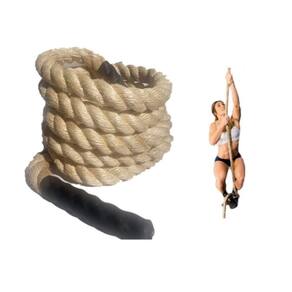 "CORDAS SISAL NATURAL para a linha do Crossfit. 34MM COM 12M Linear. É um produto diferenciado lançado pela VASTI COMÉRCIO. Nossas cordas acompanham punhos de borracha de 20cm em cada ponta, para que você tenha mais conforto e aderência nos treinos e atividades, além de evitar que a corda se desmanche; Corda Natural de Sisal é utilizado na preparação física de atletas de esportes de alta intensidade ? Envolve muitos grupos musculares, movimentando todo o corpo e gerando alto gasto calórico. Auxilia na coordenação intermuscular dos músculos das mãos e antebraços. Também utilizada para atividades de escaladas. Nossas cordas são fabricadas com fios mais longos, tornando-as mais resistentes, com menos pontas e excelente acabamento; Também temos, cordas de outros diâmetros e metragem, buscando atende-lo conforme sua necessidade e evitando desperdício; Obs.: A ponteira de ferro ( Foto) e vendida a parte em outro anúncio. Especificações Técnicas: Material: Fibra de Sisal Natural Cor: Natural Tamanho: 12 metros Diâmetro: 34 mm Carga de Ruptura de 6,090Kg, diâmetro 34mm. Temos a opção da Ponteira de Aço para Corda de Sisal para escalada Cross Funcional. Veja outros anúncios da VASTI. "