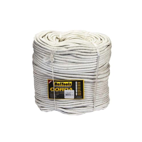 Corda Seda 14mm Rolo Com 11 Kg Branca BeltoolsFabricado em polipropileno - PP, possui boa resistência a abrasão e tração.Material 100% virgem.Ideal para amarração de cargas, fardos, confecção de barrigueiras, redes de proteção esportivas, utilização em frigoríficos, cortinas de aviários e na agricultura em geral.Não utilizar em cadeiras suspensas, cabos de guia de segurança e fixação de trava quedas.Diâmetro: 14mm.Peso: 11 Kg.Material: Polipropileno - PP.Cor: Branca.Tipo de filamento: Multifilamento.Tipo de encordamento: Trançado.Marca: BeltoolsCódigo: 76320 Marca: UNICORDASBEL