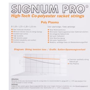 A Signum Pro é uma empresa de operação mundial na indústria do Tênis e oferece uma gama de produtos únicos e de alta qualidade. Os resultados estão aí para provar, os jogadores do time Signum Pro estão constantemente entre os tops da ATP. A Corda Signum Pro Poly Plasma 1.28mm Pack com 06 Unidades - Set Individual - Laranja oferece mais durabilidade devido a sua inovadora estrutura molecular. Proporciona um equilíbrio entre controle e durabilidade, é a escolha ideal para a sua máxima performance nas partidas.