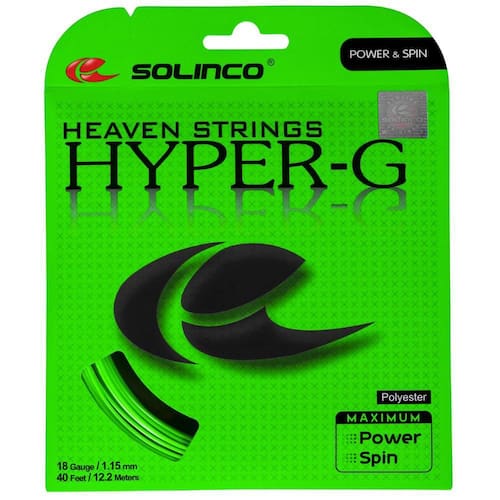 Conheça as características da Corda Solinco Hyper G 18 1.15mm Verde - Set Individual- Perfil: Potência e spin;