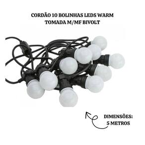 CORDÃO 10 BOLINHAS LEDS WARM TOM.M/MF BIVOLT USO EXTERNO IP44 - 22010