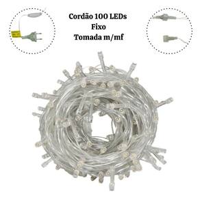 CORDÃO 100 LEDS FIXO WARM FIO TRANSPARENTE TOM. M/MF USO INTERNO 127V - 19013.