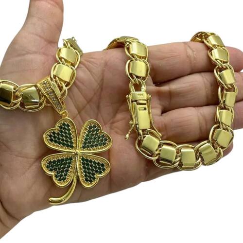 Cordão 10mm Dubai + Pingente Trevo da Sorte - Banhado a ouro Detalhes do Produto: Material: ligas metálicas de alta qualidade, especialmente tratadas para fixação e absorção do ouro, com acabamento em verniz protetor. Aparência: visual idêntico ao ouro maciço. Produção: artesanal, com atenção meticulosa aos detalhes. Banho: 10 camadas espessas de ouro 18k, finalizadas com verniz antialérgico . Elos: soldados varia conforme o modelo . Pedras: zircônias brilhantes cravejadas quando aplicável . Tamanhos Disponíveis: Cordões Masculinos: 70cm padrão e 60cm sob consulta/Pedido Via Chat . Cordões Femininos: 50cm padrão e 45cm sob consulta/Pedido Via Chat . Pulseiras: 21cm padrão ; tamanhos de 18cm a 23cm sob consulta/Pedido Via Chat. Pingentes: conforme imagens; consulte para mais detalhes via chat. Espessuras Recomendadas para Cordões / Pingentes: P: 1mm a 4mm M: 4mm a 8mm G: 6mm a 13mm Gg: 12mm a 18mm Incluso na Compra: Saquinho de organza para armazenamento seguro. Caixa elegante, perfeita para presente. Cupom de desconto para a próxima compra. Flyer com outros produtos da coleção. Carta de agradecimento personalizada. Adesivo da marca ToJoia18k. Informações Adicionais: : 6 meses termos acompanham o produto . Devolução: 7 dias para devolução sem questionamentos. Envio: despacho em até 24 horas úteis após confirmação do pagamento. Cuidados com a Peça: Evite contato com produtos químicos; aguarde o perfume secar antes de usar. Evite contato com shampoo, condicionadores e suor excessivo. Armazene em local seco, preferencialmente no saquinho de organza fornecido. Uso no mar e piscina é permitido; lave com água corrente e sabão neutro após. Por que Escolher a ToJoia18k Semi-joias luxuosas que combinam estilo, qualidade e sofisticação. Banho espesso de ouro 18k, garantindo brilho duradouro e acabamento impecável. Design exclusivo e produção artesanal, perfeitos para qualquer ocasião. Materiais premium que asseguram durabilidade. Ao escolher uma semi-joia ToJoia18k, você investe em qualidade, elegância e uma experiência única. Aguardamos sua compra Observação: pode ocorrer variação no fecho raramente . Imagens reais, sem edição. Qualquer dúvida, estamos à disposição para esclarecimentos. Marca: Não Informado