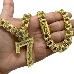 Cordão 12mm Friso + Pingente 7 - Banhado a ouro Detalhes do Produto: Material: ligas metálicas de alta qualidade, especialmente tratadas para fixação e absorção do ouro, com acabamento em verniz protetor. Aparência: visual idêntico ao ouro maciço. Produção: artesanal, com atenção meticulosa aos detalhes. Banho: 10 camadas espessas de ouro 18k, finalizadas com verniz antialérgico . Elos: soldados varia conforme o modelo . Pedras: zircônias brilhantes cravejadas quando aplicável . Tamanhos Disponíveis: Cordões Masculinos: 70cm padrão e 60cm sob consulta/Pedido Via Chat . Cordões Femininos: 50cm padrão e 45cm sob consulta/Pedido Via Chat . Pulseiras: 21cm padrão ; tamanhos de 18cm a 23cm sob consulta/Pedido Via Chat. Pingentes: conforme imagens; consulte para mais detalhes via chat. Espessuras Recomendadas para Cordões / Pingentes: P: 1mm a 4mm M: 4mm a 8mm G: 6mm a 13mm Gg: 12mm a 18mm Incluso na Compra: Saquinho de organza para armazenamento seguro. Caixa elegante, perfeita para presente. Cupom de desconto para a próxima compra. Flyer com outros produtos da coleção. Carta de agradecimento personalizada. Adesivo da marca ToJoia18k. Informações Adicionais: : 6 meses termos acompanham o produto . Devolução: 7 dias para devolução sem questionamentos. Envio: despacho em até 24 horas úteis após confirmação do pagamento. Cuidados com a Peça: Evite contato com produtos químicos; aguarde o perfume secar antes de usar. Evite contato com shampoo, condicionadores e suor excessivo. Armazene em local seco, preferencialmente no saquinho de organza fornecido. Uso no mar e piscina é permitido; lave com água corrente e sabão neutro após. Por que Escolher a ToJoia18k Semi-joias luxuosas que combinam estilo, qualidade e sofisticação. Banho espesso de ouro 18k, garantindo brilho duradouro e acabamento impecável. Design exclusivo e produção artesanal, perfeitos para qualquer ocasião. Materiais premium que asseguram durabilidade. Ao escolher uma semi-joia ToJoia18k, você investe em qualidade, elegância e uma experiência única. Aguardamos sua compra Observação: pode ocorrer variação no fecho raramente . Imagens reais, sem edição. Qualquer dúvida, estamos à disposição para esclarecimentos. Marca: Tojoia18K
